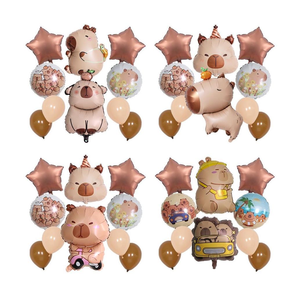 10-piece Capibara-themed Aluminum Film Balloon Set for Children's Birthday Party Decoration Supplies