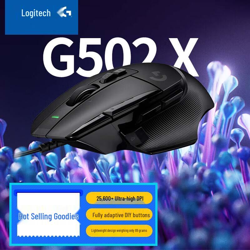 Experience precision and speed with the Logitech G502 X Wired Gaming Mouse. Engineered with LIGHTFORCE hybrid optical-mechanical switches for incredible speed and reliability, and powered by the HERO 25K sensor for sub-micron accuracy. This right-handed esports mouse features multiple programmable controls for ultimate customization. Its sleek black design offers a comfortable grip for extended gaming sessions.
