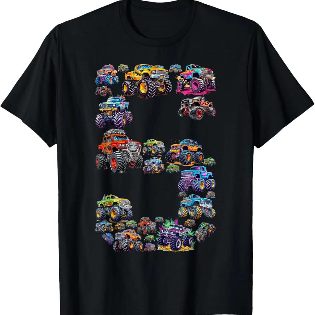 Camiseta de Aniversário para Crianças de 5 Anos Monster Truck É o Meu 5º Aniversário