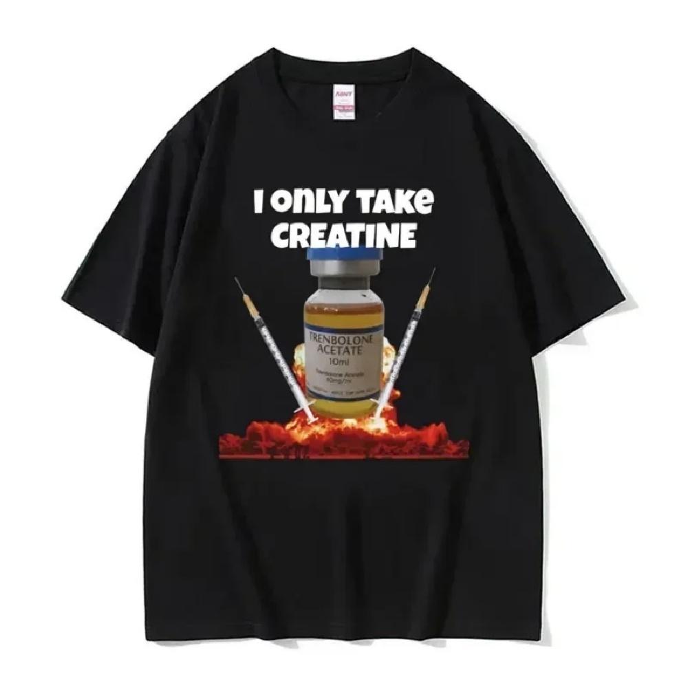 Só Tomo Creatina Meme Engraçado de Academia Camisetas Gráficas Femininas Moda Feminina Camiseta Casual Streetwear