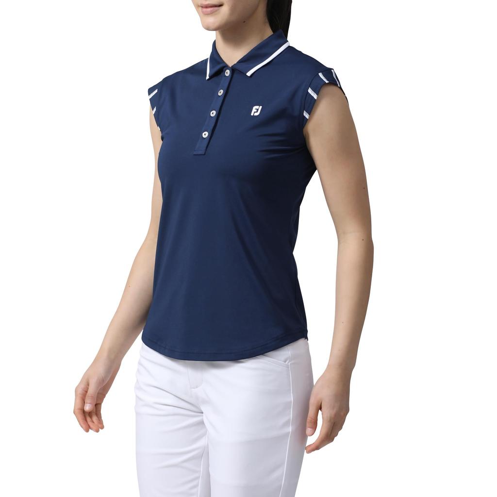 FootJoy Women's Shoulder Stripe Cap Sleeve Shirt, Navy, Size M (FJW-S24-S11, 81956-M)