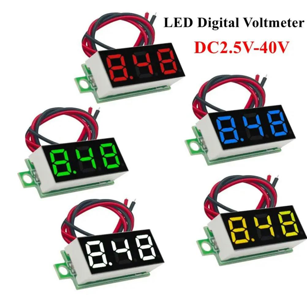 2 fios DC Voltímetro Display LED 0,28 polegadas Testador de voltagem digital DC 2,5 V-40 V Vermelho/Azul/Amarelo/Verde Proteção contra polaridade reversa