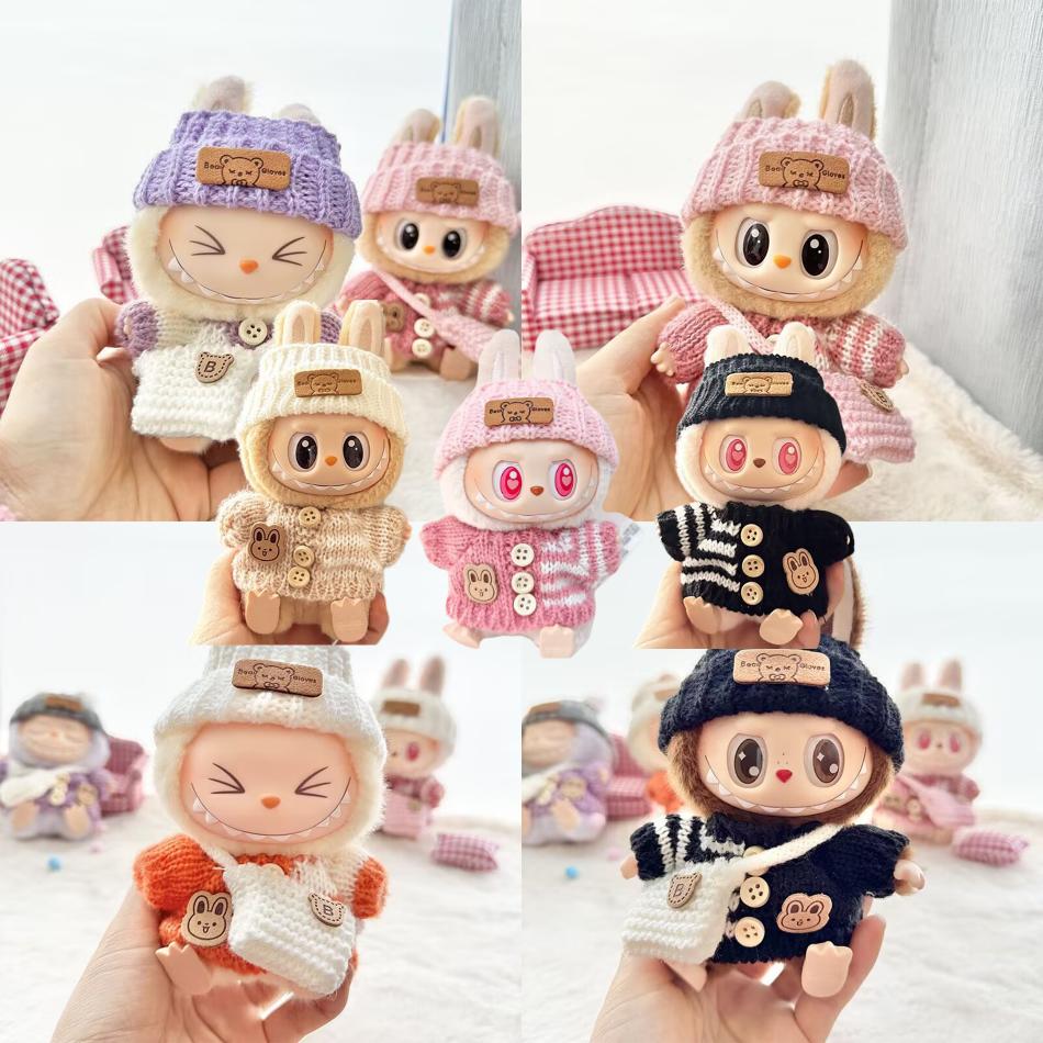 Doll clothes for Labubu Outfit V1 V2 V3 17cm Dolls Sitting Accessories Glasses Clothing Designer Gift Sweater Hat Bag Set