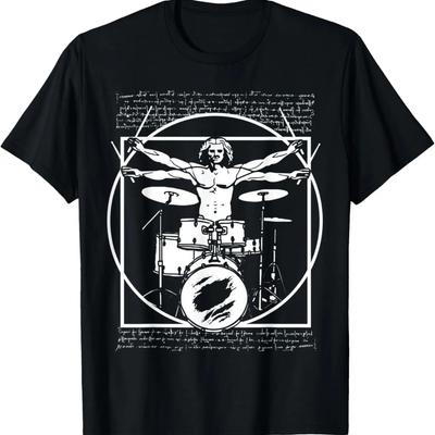 Bateria e Baterista - Camiseta Homem Vitruviano Baterista de Da Vinci