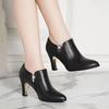 Botas femininas de cano curto, outono e inverno, bico fino, salto alto, tamanho grande 35-42, salto fino, zíper, couro sintético, botas femininas