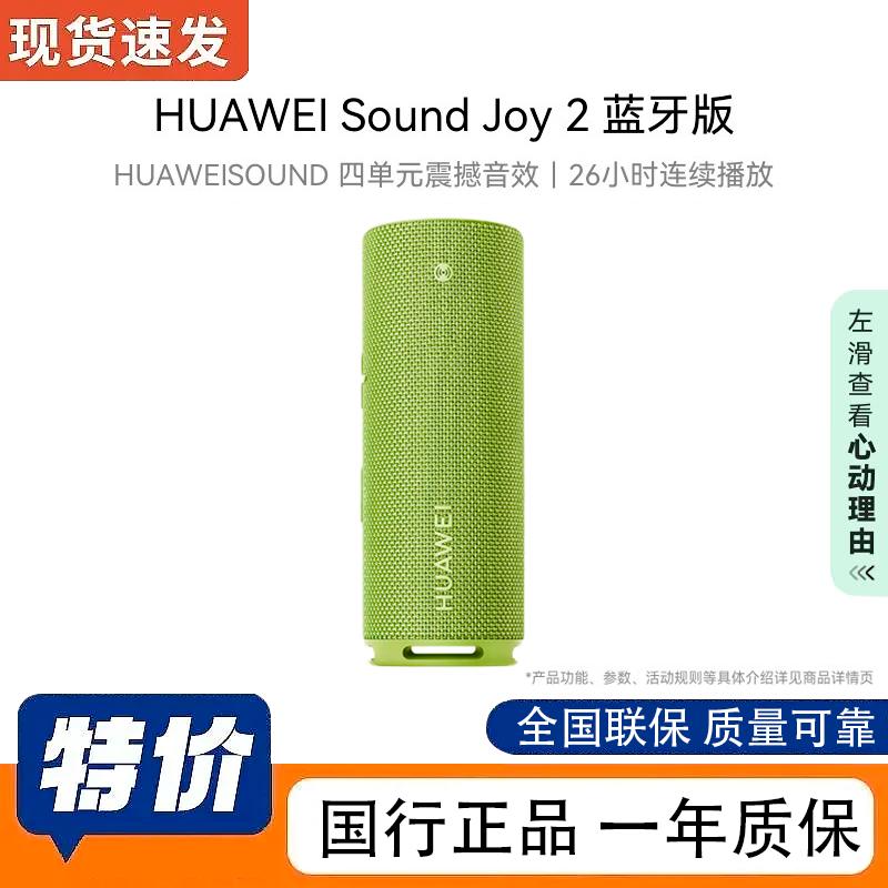 The HUAWEI Sound Joy 2 is a portable Bluetooth speaker designed for on-the-go music. It features Bluetooth 5.2 connectivity, a long-lasting 26-hour battery, and supports stereo pairing for an enhanced audio experience. With its durable design, it's perfect for outdoor use and also supports hands-free calling. It integrates with the Huawei HarmonyOS smart ecosystem.