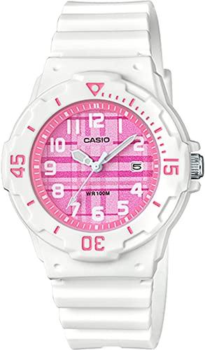Casio LRW-200H-4CV Analog Watch for Women and Kids, Gloss White with Pink Check Pattern, Overseas Model [Parallel Import]