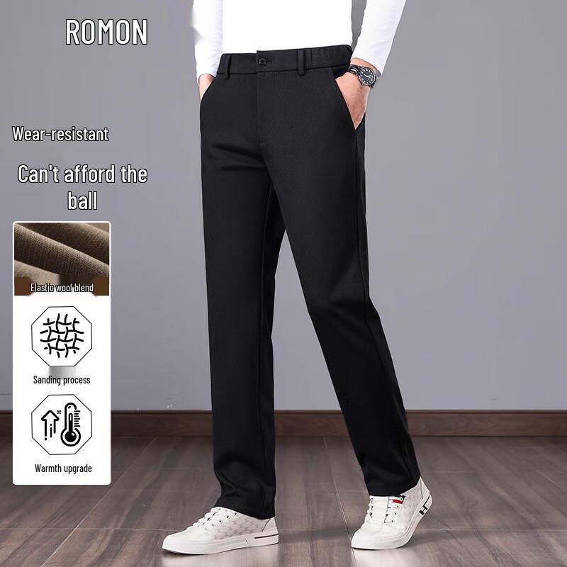 ROMON Men's Autumn/Winter Brushed Business Casual Trousers