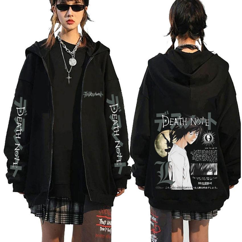 Anime Death Note L Lawliet Graphic Zipper Hoodie Men Women Casual Oversized Cotton Zip Up Jacket Male Vintage Zip Up Sweatshirt