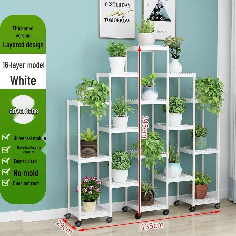 16-Tier Stepped Plastic Flower Pot Stand with Wheels