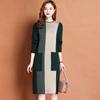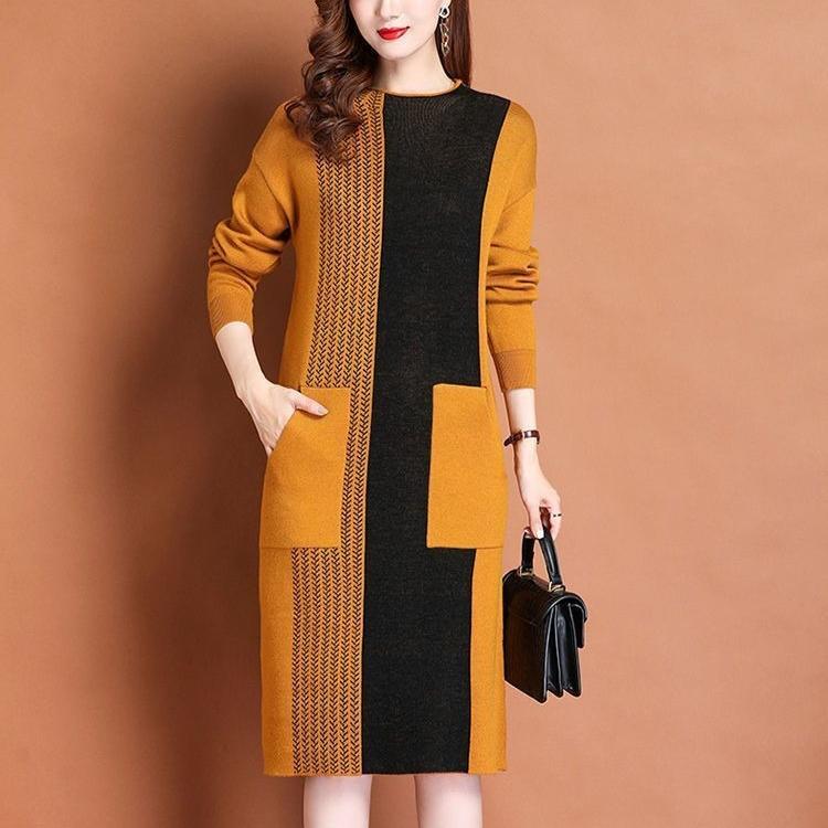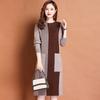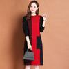 Women's Crew Neck Plus Size Knit Dress Autumn and Winter Color-Block Pullover Sweater Dress Over-the-Knee Mid-Length Knit Sweater