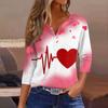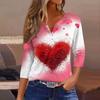 Camiseta feminina com estampa de botão, manga 3/4, moda diária de fim de semana, básica, decote em V, top regular