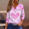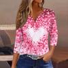 Camiseta feminina com estampa de botão, manga 3/4, moda diária de fim de semana, básica, decote em V, top regular