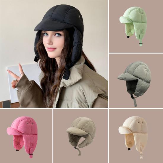 Chapéu Lei Feng Cor Sólida Outono Inverno Chapéu de Penas Design à Prova de Vento Fivela Ajustável Touca para Clima Frio