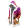 Jaqueta Unissex Casual e Fashionável com Gola de Pelúcia com Capuz e Manga Comprida com Estampa de Carnaval