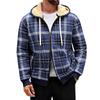 Men's Hooded Zippered Fleece-Lined Thick Plaid Casual Sports Jacket
