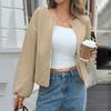 Cardigan com Zíper Moda Feminina Cor Sólida Manga Longa Tops Jaqueta
