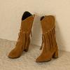 Winter Black Yellow Women Mid Calf Boots Round Toe High Heel Small Big Size 33 52