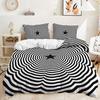 Capa de Edredom Listrada Preto e Branco Fronha Estampa Digital Conjunto de Três Peças Roupa de Cama Estilo Simples