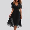 Vestido Feminino Casual da Moda Decote V Cor Sólida A Linha Cintura Marcada Zíper