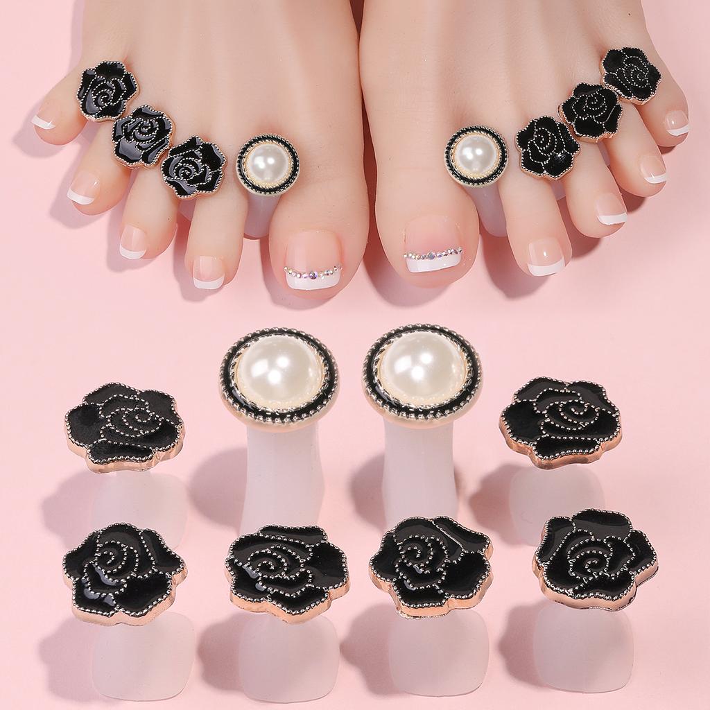 8 Peças Separador de Dedos do Pé de Silicone Rosa Preto Fofo Conjunto Suave de Ferramentas de Pedicure de Separadores de Dedos Para Pés Aplicar Esmalte e Reparar Unhas
