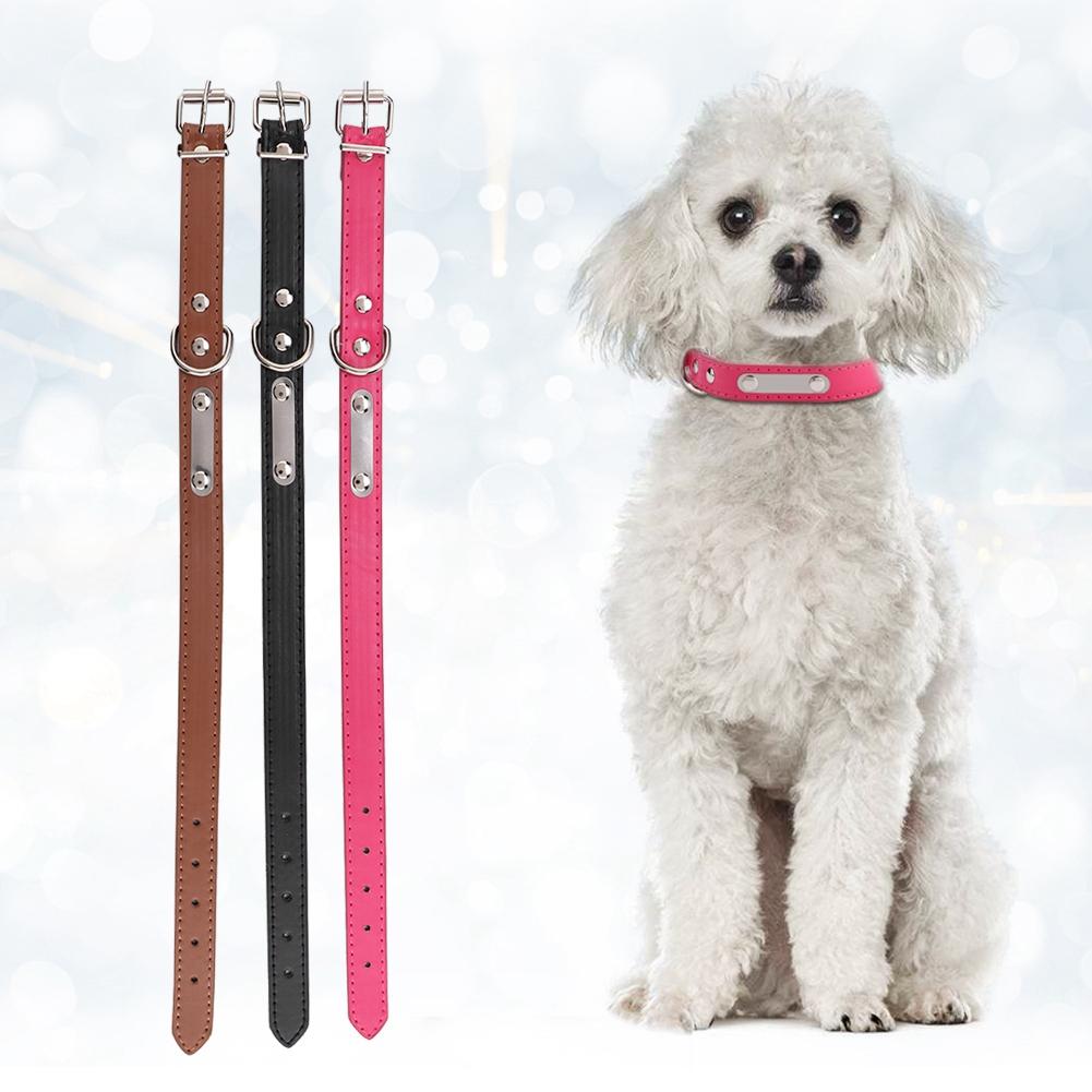 3Pcs Adjustable Soft PU Leather Pet Dog Collar Dog Training Collar with ID Plate