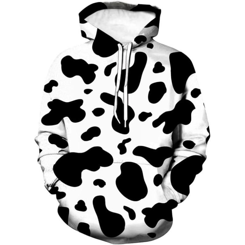 Unisex Novelty Hooded Sweatshirt 3D Cow Print Fun Hooded Sweatshirt Pullover for Spring and Autumn Men's Clothing