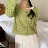 Long Sleeve Crochet Top for Women Sheer Button Up Hollow Out Openwork Knit Cardigan Jacket Spring Summer Boho Vacation Outfit