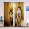 Cortinas de voile transparente para decoração de sala de estar, quarto, cozinha, chiffon, tule, janela, cachorro, cachorro, fofo, animal, inverno, neve, husky