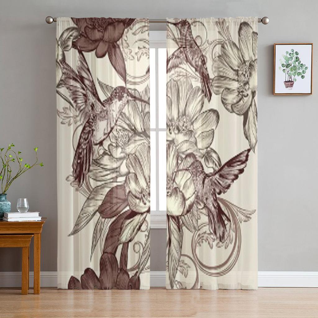 Birds Flowers Sheer Curtains for Living Room Transparent Tulle Window Treatments Bedroom Kitchen Home Decor Veil Drapes