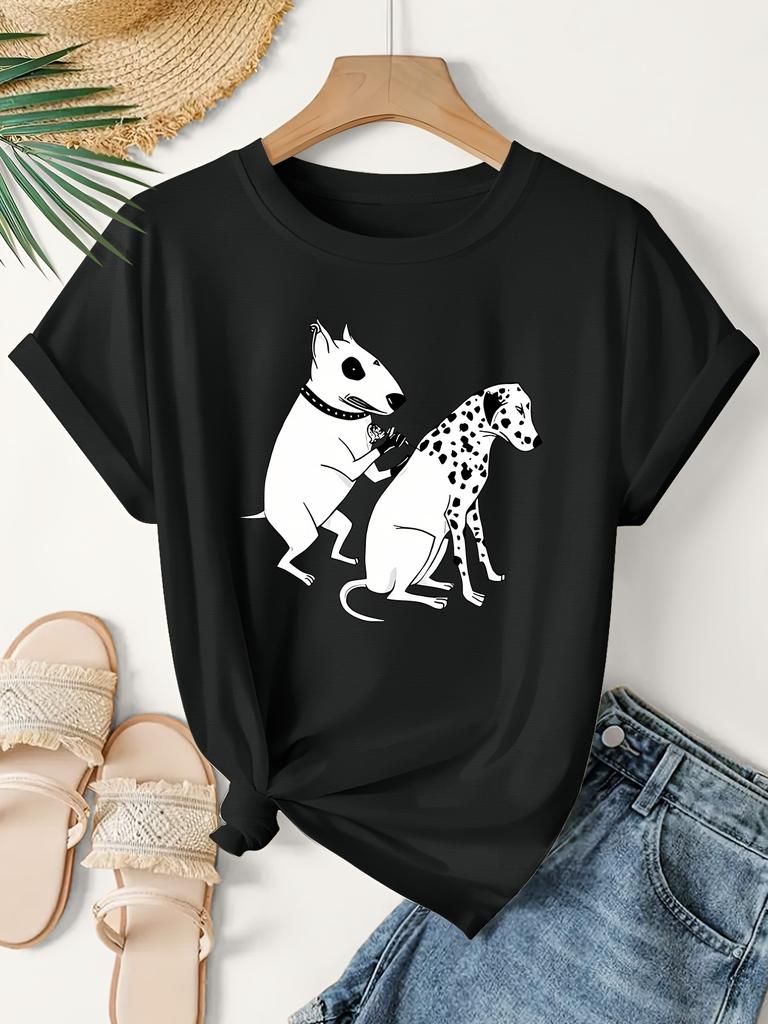 Women's Men with Bull Terrier & Dalmatian Dog Tattoo Design T-shirt Vintage Fashion Tee Harajuku Cotton Streetwear Oversized