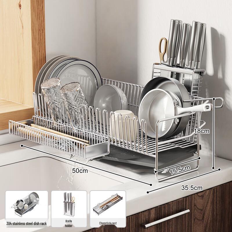 Xuyang Lancai 304 Stainless Steel Kitchen Dish Rack with Knife & Chopstick Holders