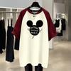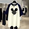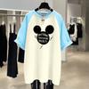 Nova Camiseta de Verão com Letras Europeias, Versão Grande, Solta, com Recortes e Cores Contrastantes, Manga Raglan Curta para Mulheres