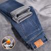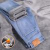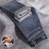 Autumn and winter new high-end pure cotton jeans fleece thickened slim-fitting straight elastic casual trousers