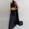 Style Women's Summer New Long Skirt Temperament Streamer Neck Celebrity Style Dress