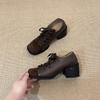 Autumn Winter Vintage Square Toe Thick Heel Women Mary Jane Shoes Street Style Lace Up Party Dress Female Pumps