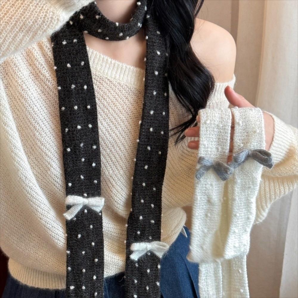 Polka Dot Bow Wool Shawl Harajuku Long Narrow Scarves All-match Knitted Scarf Streetwear