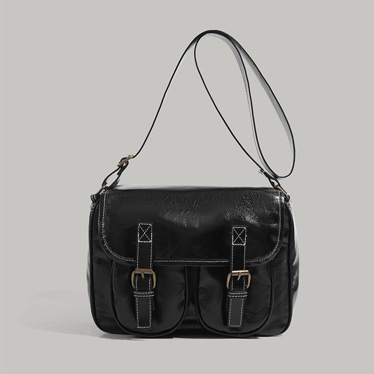 Oil Wax Leather British Style Briefcase Bag for Women 2024 New Retro Messenger Bag Large Capacity Single Shoulder Crossbody Bag for Women Trendy