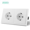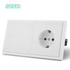 BSEED 1/2Gang Mechanical Light Switches Large Buttons 1Way With EU Socket 2USB Charging Ports Plastic Panel No LED Light White