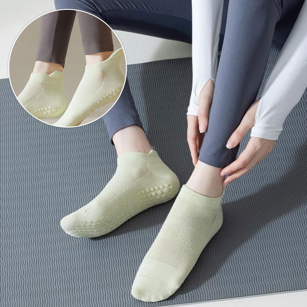 1Pair Women's Yoga Socks Anti-Slip Pilates Beginners Breathable Thin Ladies Boat Socks Summer Indoor Fitness Sports Cotton Socks