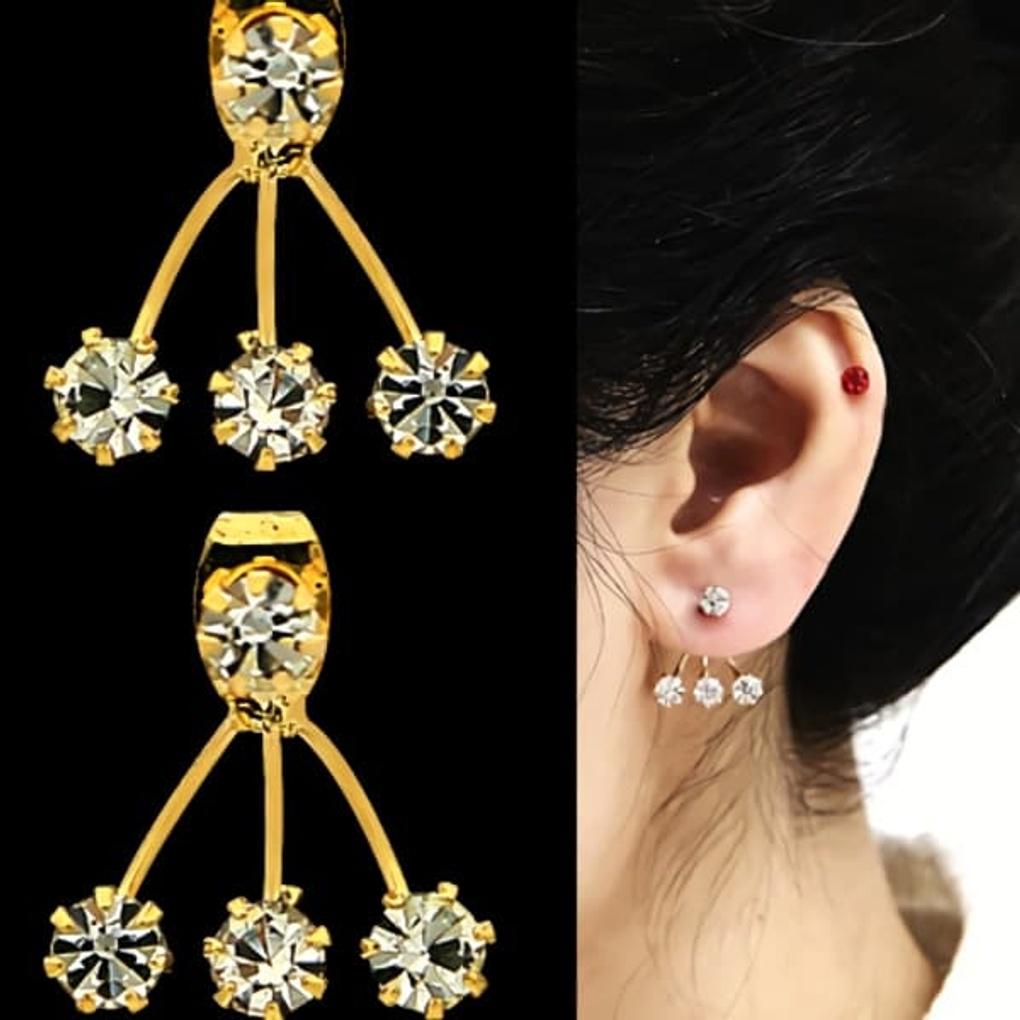 Women's 14KGP Two-Way Three-Cubic Earrings