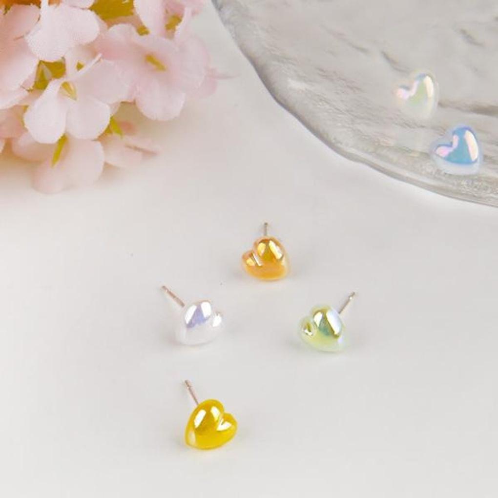 Women's Heart Powder Mini Silver Needle Earrings Set