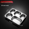 304 Stainless Steel Rectangular 5-Compartment Meal Tray