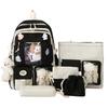 5 peças/conjunto Mochila Kawaii Feminina Coreana Fofa Mochila Estudante Menina Grande Capacidade Mochila Escolar Bolsa com Cordão Carteira