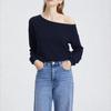 Moletom com Bolinhas e Ombro Caído para Mulheres Novo Outono Azul Temperamento Slim Casual Manga Longa