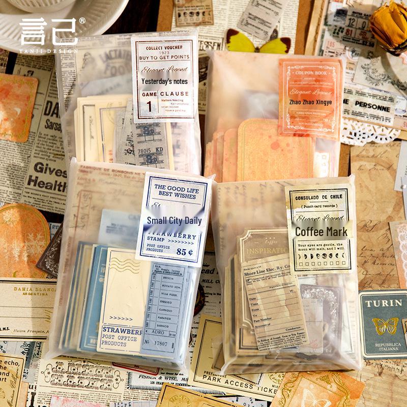 Yanji Retro Journal Material Pack: 100 Sheets - 4 Types Available