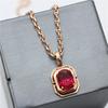 Shiny Square Red Natural Zircon Pendant Necklace For Women Rose Gold Color High Quality Daily Fine Vintage Jewelry