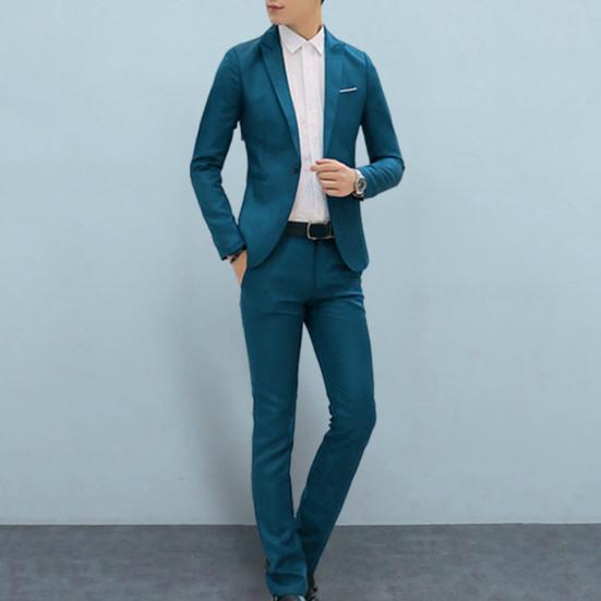 2Pcs/Set Men Spring Autumn Solid Color Business Suit Lapel Long Sleeve Pockets Single