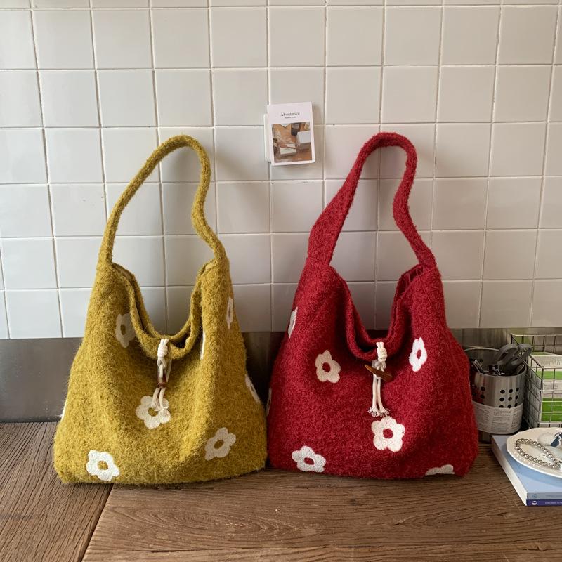 Bolsa de Ombro Único Bordada com Nuvens, Bolsa de Mão Tote Doce e Artística Estilo Floresta