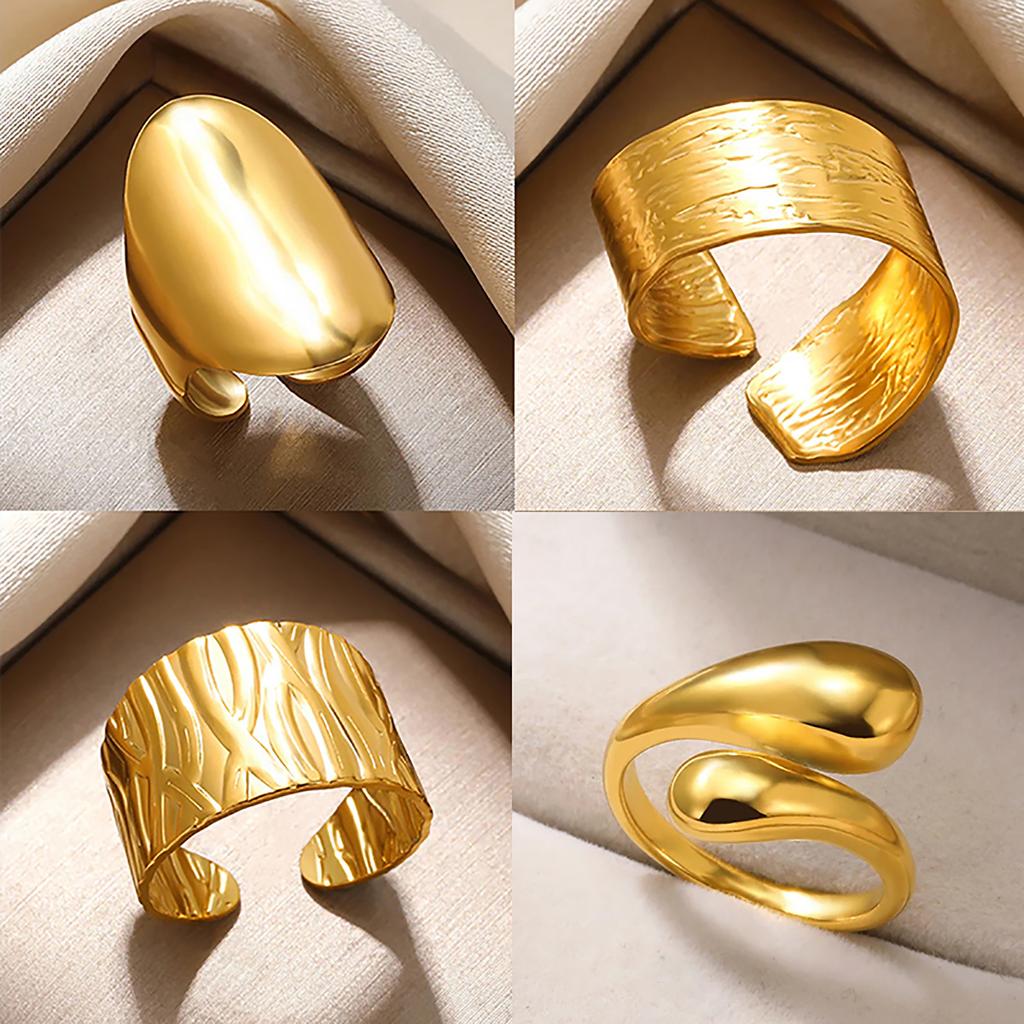 Stainless Steel Geometric Rings For Women Men Gold Color Wide Oval Jewelry Hippie Punk Opening Ring Wedding Party Gift